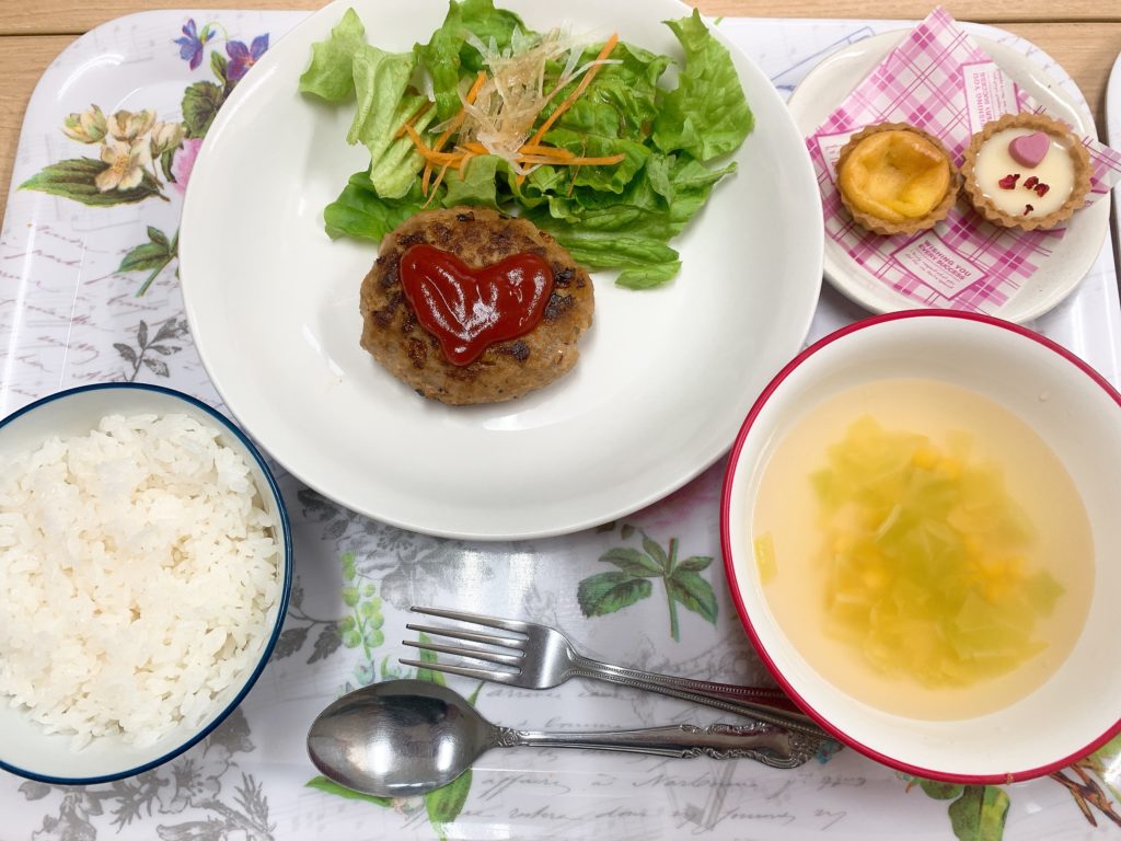 今日は一足早いですが、バレンタインメニューにしました((((oノ´3`)ノ❤