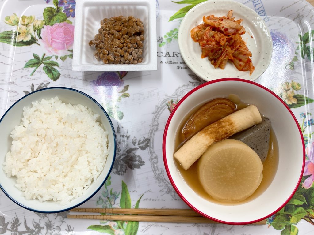 今日の昼食は納豆キムチ、おでん、白米です🎵