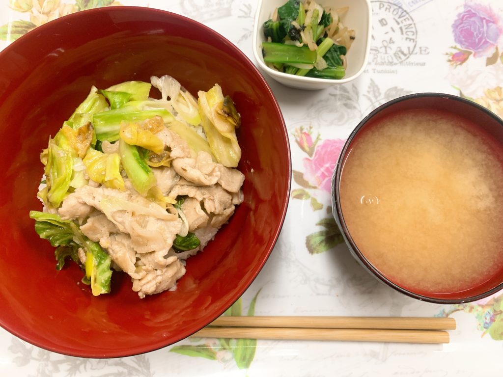 ネギ塩豚丼にはキャベツも入れてボリューム満点です(●´ω`●)